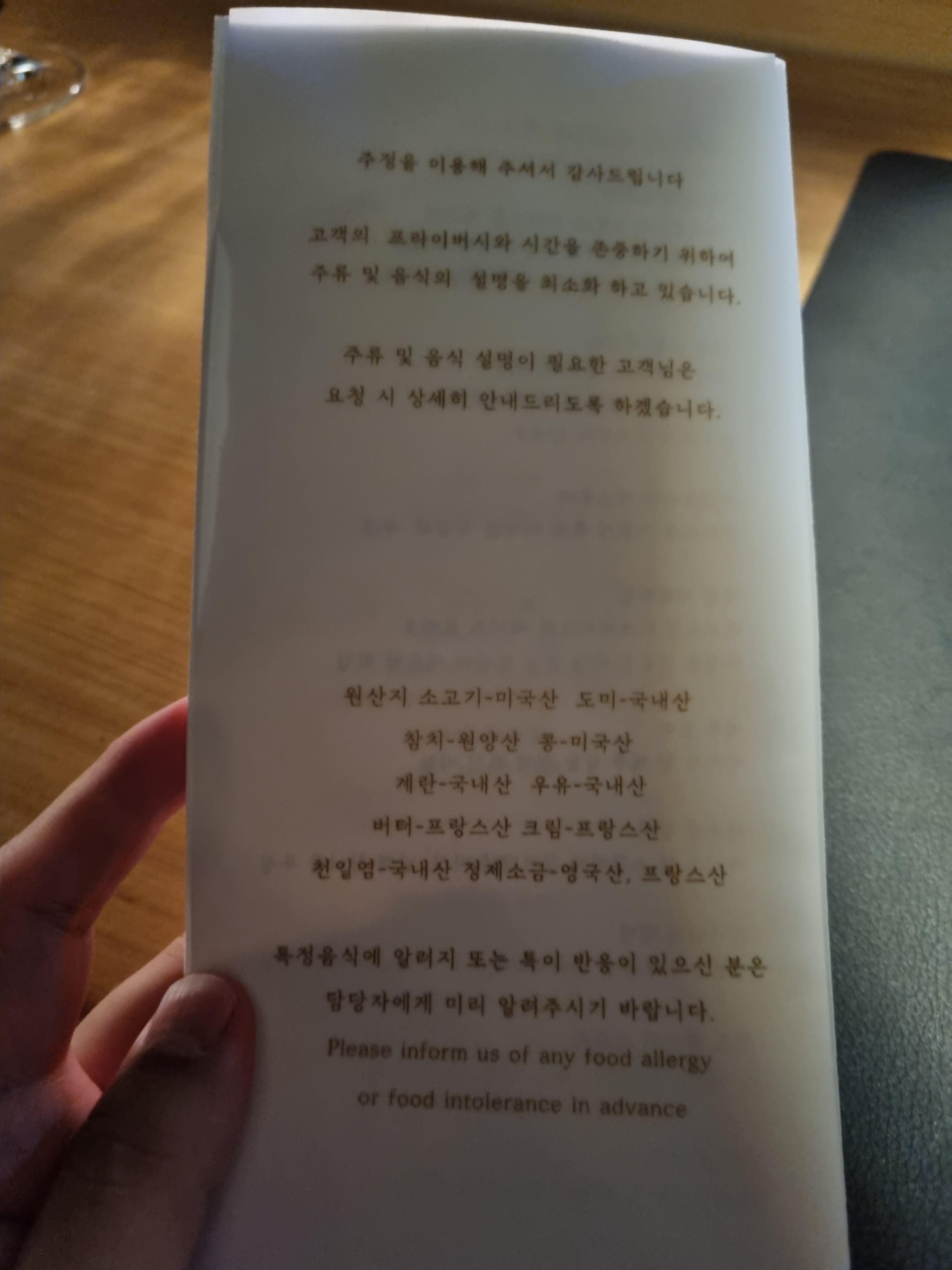 해달라고 하니 키 크고 실눈캐인 메인 셰프님이 식사 끝까지 엄청 친절히 설명해 주심.