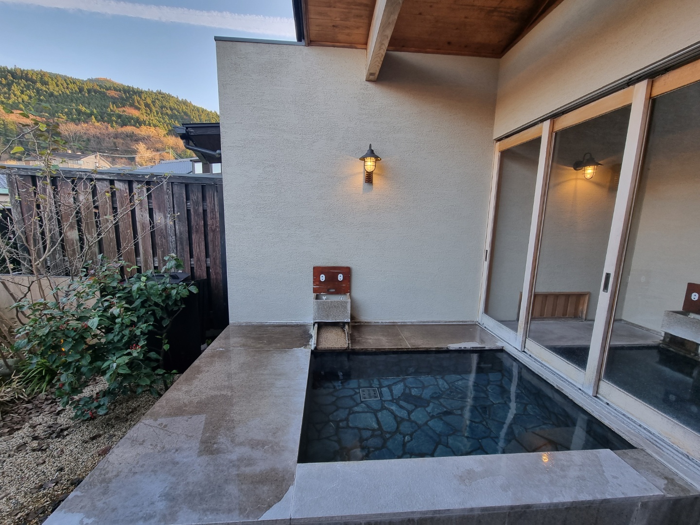 유후다케가 보이는 리셉션에서 체크인을 한 뒤 잠시 대기하면 방을 안내 받음.