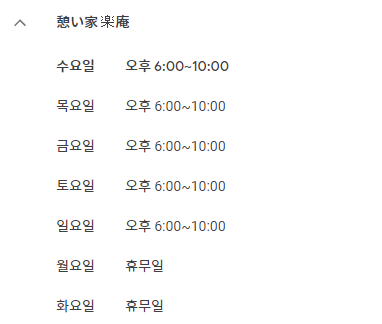 업소 명 : 憩い家 楽庵